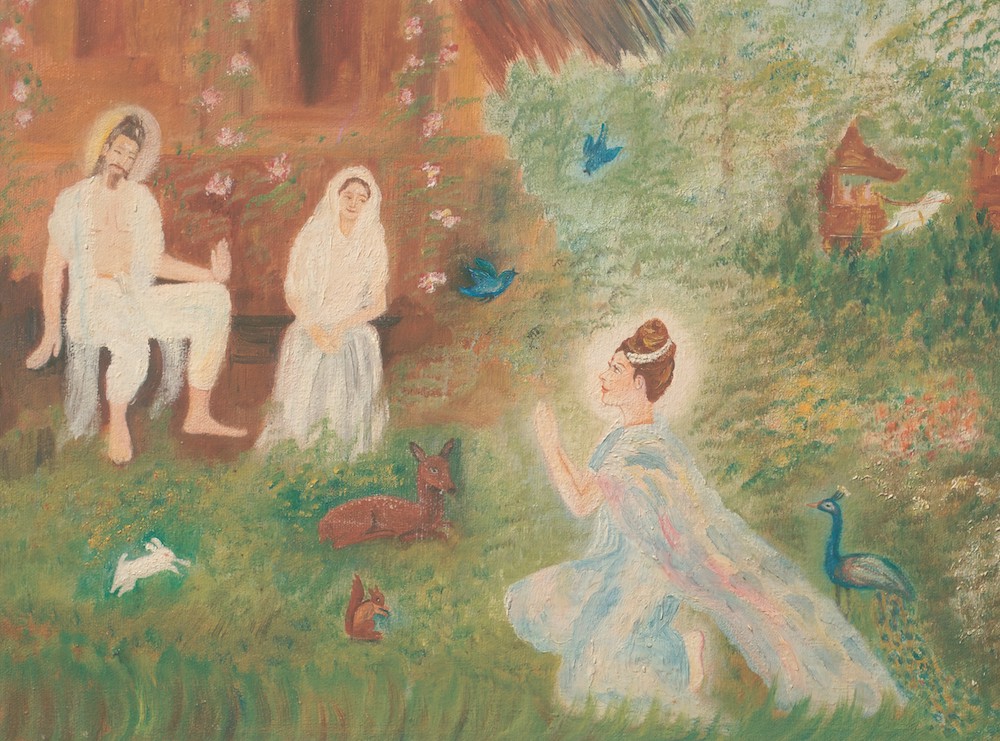 But Satyavan sometimes half understood, The unplumbed abyss of her deep passionate want.... ||115.34|| Yet ever they grew into each other more Until it seemed no power could rend apart, Since even the body’s walls could not divide. ||115.42|| For when he wandered into the forest, oft Her conscious spirit walked with him and knew His actions as if in herself he moved; He, less aware, thrilled with her from afar. ||115.43||