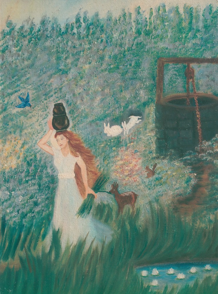 A worshipped empress all once vied to serve, She made herself the diligent serf of all, Nor spared the labour of broom and jar and well, Or close gentle tending or to heap the fire Of altar and kitchen, no slight task allowed To others that her woman’s strength might do. ||115.22||