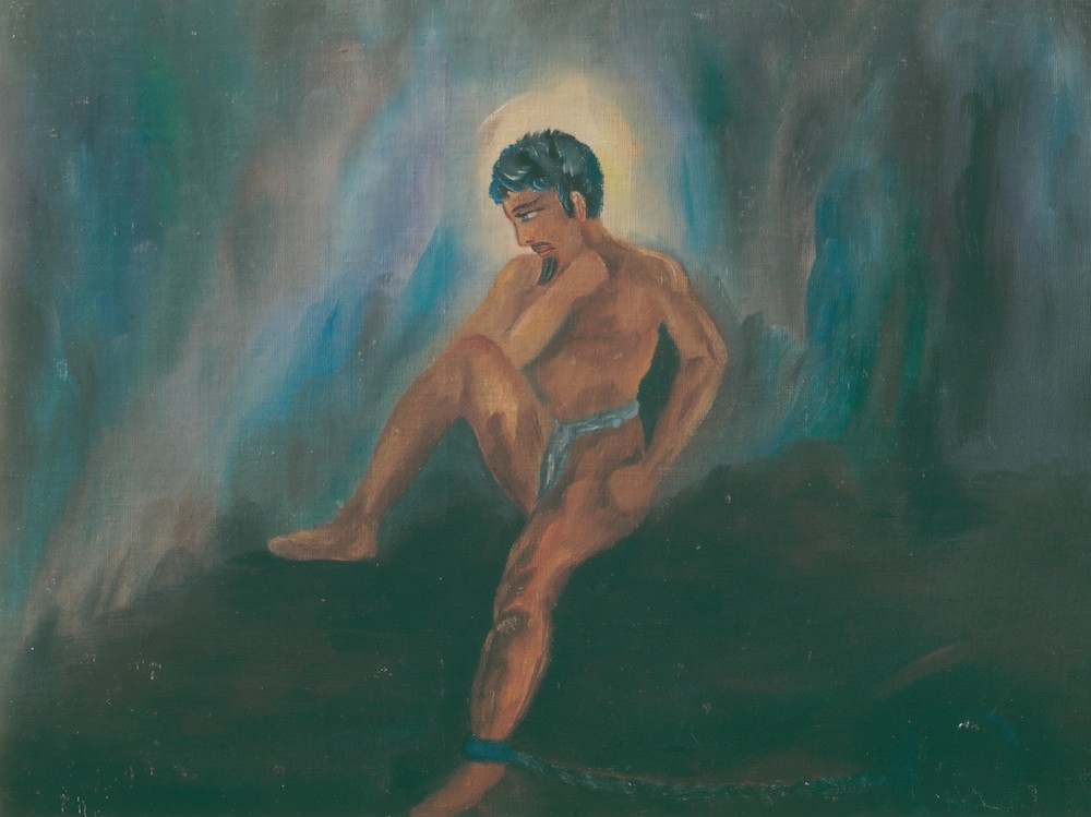 She ceased, and like an echo from below Answering her pathos of divine complaint A voice of wrath took up the dire refrain, ||122.23|| “I am the Man of Sorrows, I am he Who is nailed on the wide cross of the universe; To enjoy my agony God built the earth, My passion he has made his drama’s theme.... ||122.24|| I am the doer of demoniac deeds; I was made for evil, evil is my lot; What Nature made me, that I must remain. ||122.37||