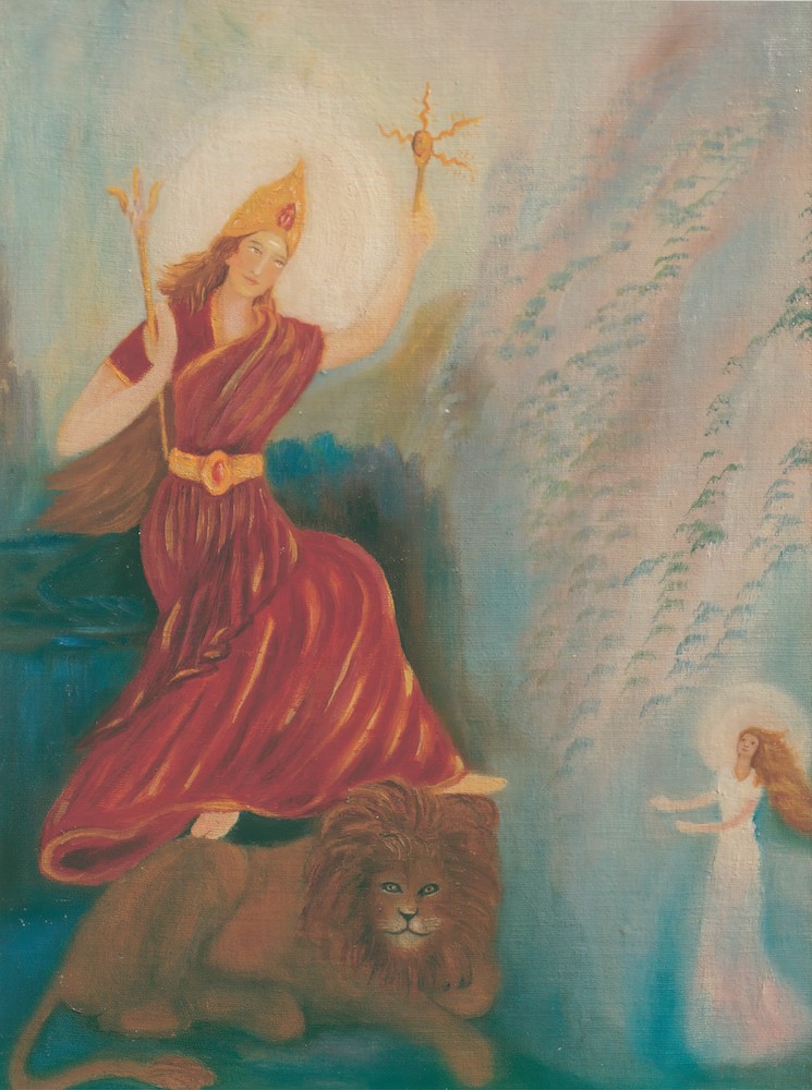 Ascending still her spirit’s upward route She came into a high and happy space... ||124.1|| Here, living centre of that vision of peace, A Woman sat in clear and crystal light: ||124.5|| A low music heard became her floating voice: O Savitri, I am thy secret soul. ||124.6|| I have come down to the wounded desolate earth To heal her pangs and lull her heart to rest... ||124.7|| I shall save earth, if earth consents to be saved. ||124.25||