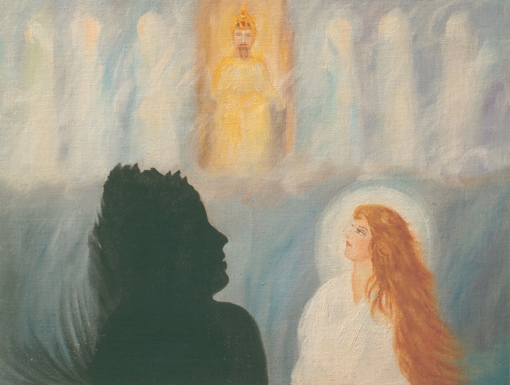 But Savitri answered meeting scorn with scorn, The mortal woman to the dreadful Lord: Who is this God imagined by thy night, Contemptuously creating worlds disdained, Who made for vanity the brilliant stars? ||137.90|| Not he who has reared his temple in my thoughts And made his sacred floor my human heart. ||137.91|| My God is will and triumphs in his paths, My God is love and sweetly suffers all.... ||137.92|| Love’s golden wings have power to fan thy void: The eyes of love gaze starlike through death’s night, The feet of love tread naked hardest worlds. ||137.96||