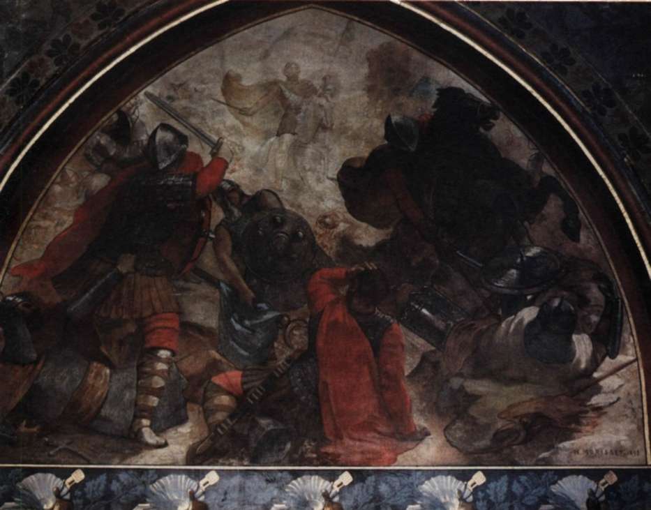 "All the slain Moors were at the bottom," Mother specified, "and I painted the slain or the struggling Moors, the reason being," she smiled, "that I could not climb to the top of the ladder to paint, it was much too difficult! So I painted what was at the bottom. Anyway, everything went off well, we had brought paints to the church and kept them handy. Naturally, the priest then received us and, along with the anar-