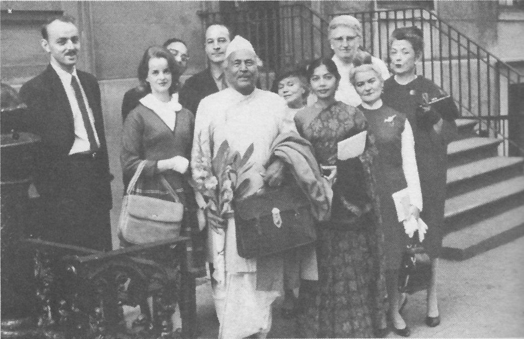 Sri A.B. Purani in New York 1964 with Eric Hughes, Anie, Kailas, Matilda Scott, Sam Spanier, Dr. Karelitz-Karry, Mrs. Polly Holmes, Mrs. Eleanor Montgomery