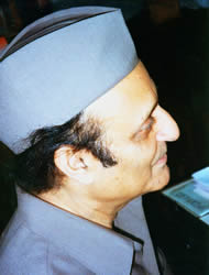 Karan Singh (born 9 March 1931) is a member of India's Upper House of Parliament, the Rajya Sabha. He is a senior member of the Indian National Congress Party who served successively as Sadr-i-Riyasat and Governor of Jammu and Kashmir. Singh is the son of the last ruler of the erstwhile princely state of Jammu and Kashmir, Maharaja Hari Singh. Singh received the Padma Vibhushan in 2005.