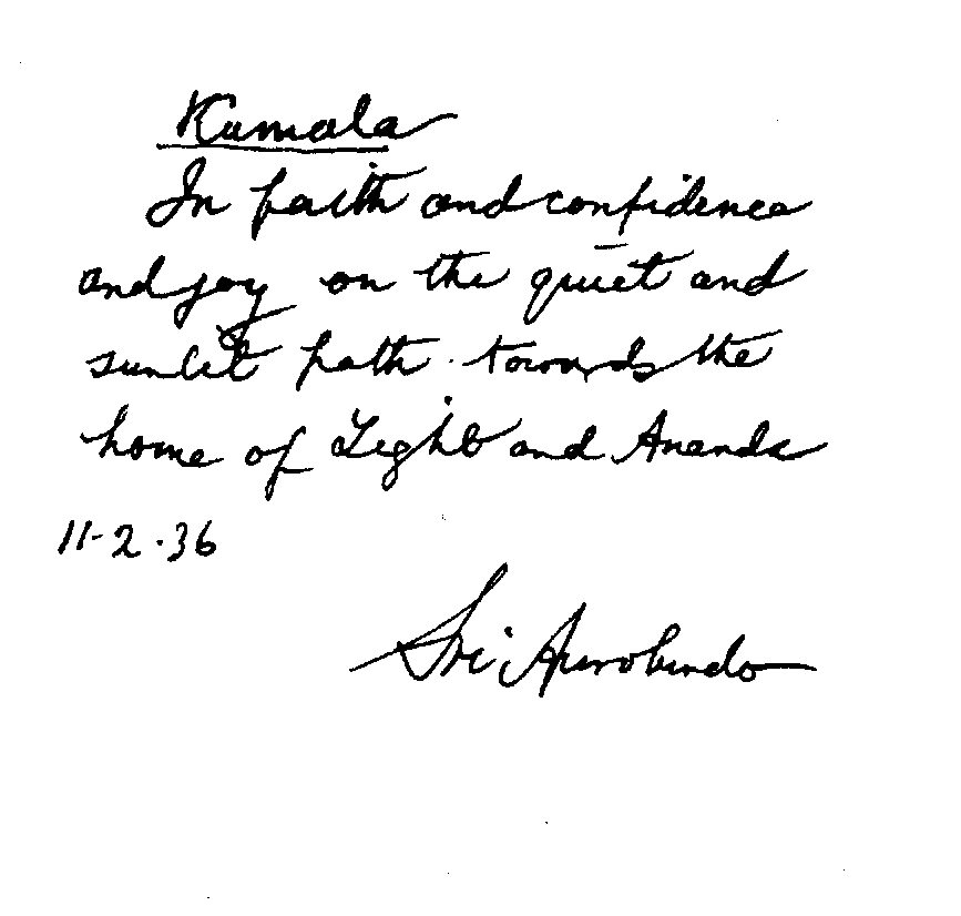 The Mother has showered her grace on her children in such a way that every child can say, "The Mother has specially showered her grace on me only. For none else she has done this." Kamala is indeed one of them.