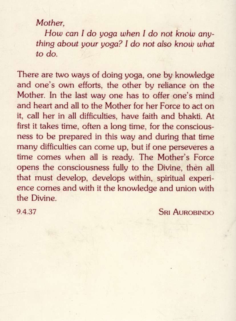 Kamalaben is a person who came to the Ashram at a very young age for a spiritual life and she went through many conflicts and pulls of vital desire on the one hand and had an inspiration to do yoga though not knowing the first elements of it on the other. Questions such as "Is there any aspiration in me?" - "Why do I feel like leaving the Ashram though I do not like to leave?" — "Why do I remember the relatives? - What to do?" and Sri Aurobindo's answers to them are a source of guidance and inspiration not only for Kamalaben but all aspirants who go through similar conflicts. This forms the third part of the correspondence entitled "Introspection".