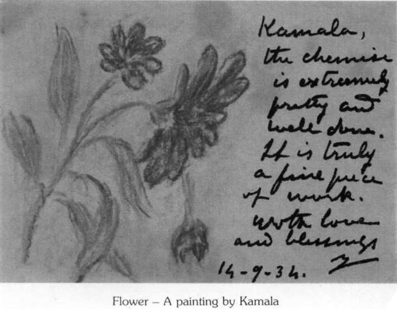 Kamalaben learned the art of painting after coming to the Ashram. She particularly received full encouragement from Champaklal. But Sri Aurobindo and the Mother also gave their guidance and appreciation to a budding artist; this will be seen in the sixth part where the correspondence is given. Kamalaben did a number of flower studies which were seen by Sri Aurobindo and the Mother; the Mother wrote the significance of each flower. One of these paintings is included in this book.