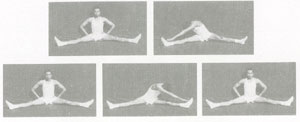 Starling position: Sit on floor, hands on waist, feet wide apart, torso erect.