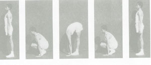 Before starting this programme it is advisable to consult a doctor to check that one does not have any serious physical or health problem that would prevent one from taking up physical exercise. One should then start slowly, doing only a few repetitions of each exercise to begin with. Then gradually one should increase the number of repetitions, until one finds that the muscles of the whole body have been worked out sufficiently. It is said that about fifteen repetitions of each exercise are required to induce sufficient blood circulation in each area of the body. In this exercise plan, minimum and maximum number of repetitions for each exercise have been given. But this is only a guide, and one need not strictly limit oneself by these repetitions. For a man with normal health and body, the maximum number given in the text should be sufficient. A weaker man should keep nearer to the lower number. A heavy man with a high fat percentage should increase the number to twenty, twenty-five or thirty repetitions to burn his excess fat. One must be led by one's feeling. At the end of the exercise, one must be pleasantly tired but not exhausted.