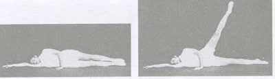 (i) Raise the upper leg laterally as high as possible. Breathe in.