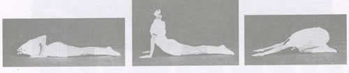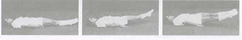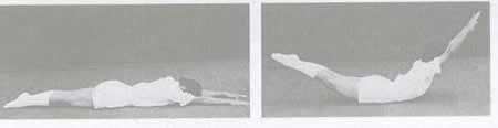 Starting position: Lie on the stomach, feet together, palms on the ground near the waist, fingers pointing headward.