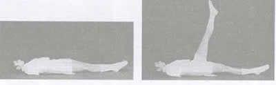 (i) Raise the legs slightly above the floor and sway them together laterally to the extreme left. Breathe in.