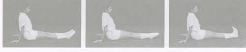 Starting position: Sit with legs stretched out in front, feet slightly apart, back straight and the hands on the floor behind for support.