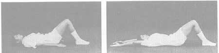 Starting position: Lie on the back, knees bent at 90 deg., feet flat on floor, arms along the body.