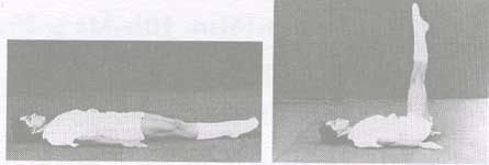 (ii) Keeping the feet apart, raise the legs till they are at right angles to the body. Breathe out.