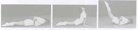 Starting position: Lie on your side, legs straight, lower arm stretched under the head along the floor , upper arm placed in front of the body for balance.