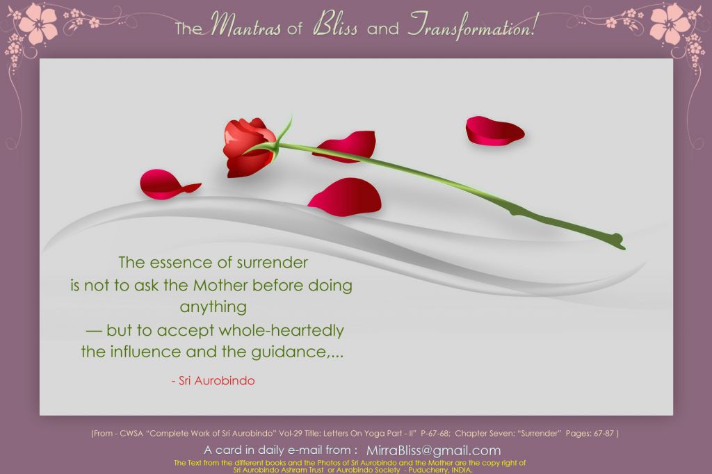 OM Sri Aurobindo Mira Open my mind, my heart, my life to your Light, your Love, your Power. In all things may I see the Divine