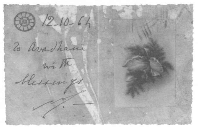 Avadhani - the spiritual name given by the Mother to Bhanabai G. Patel on 6th June 1954. Avadhani meaning careful.