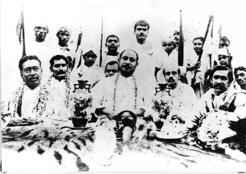Sri Aurobindo (far right) & Bepin Chandra Pal (far left) - Uttarpara, April, 1908