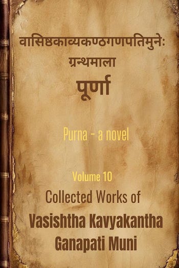 His novel, purna, in Sanskrit, though unfinished, is unique in many ways. The style and diction that the Muni used here make it an unparalleled novel of his time. It not only depicts the ability of the Muni to write beautifully and spontaneously in Sanskrit prose, but it also records his power of expressing the feelings of the heart and not just the logic of the mind.