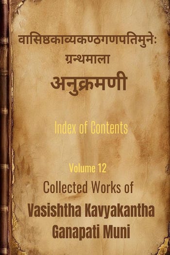 Vasishtha Kavyakantha Ganapati Muni (1878 -1936) belongs to the rare race of intellectual and spiritual giants who crowded into the narrow corridors of the last quarter of 19th and first four decades of the 20th century to endow life, letters and all endeavors with meaning, purpose and altitude. He was a valiant soldier in the cause of Truth and Divinity. For communing with the Divine, certainly he was well-endowed, gifted as he was with marvelous powers of mind, intellect and soul. Even highly learned people of our time wonder at his indubitable versatile genius, keenness of perception and understanding of our modern problems, though he had never been to school all his life. His powers of intellect and intuition had solved and untied many mystic knots. His wide scholarship and studies in religious lore harmonized in him all religions and schools of philosophy. He was a master of metaphysics and his gift transported him into regions whence he could see the entire manifestation. In fact, he belonged to the order of the Rig Vedic seers who were gods among men.