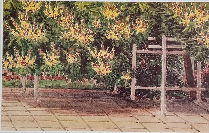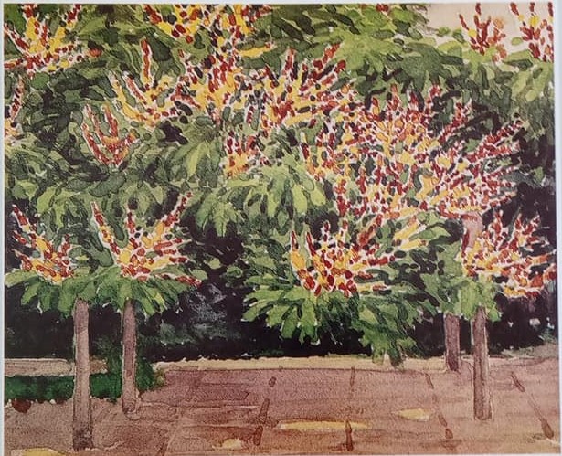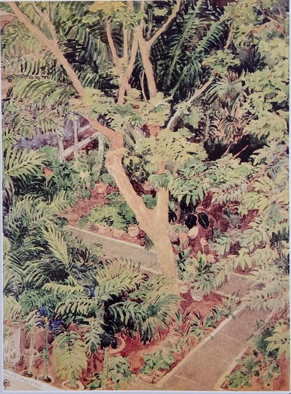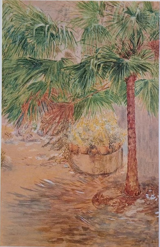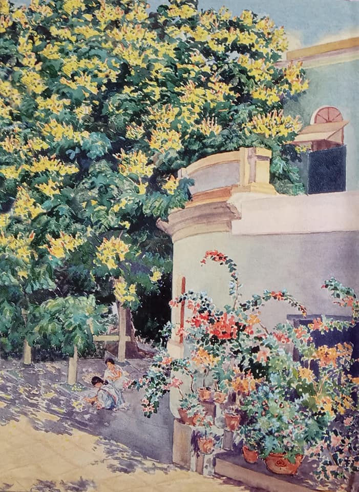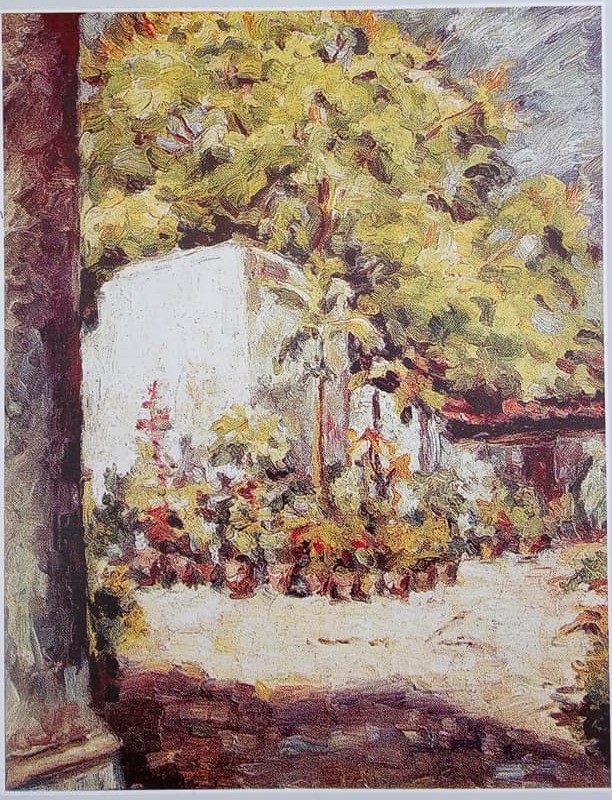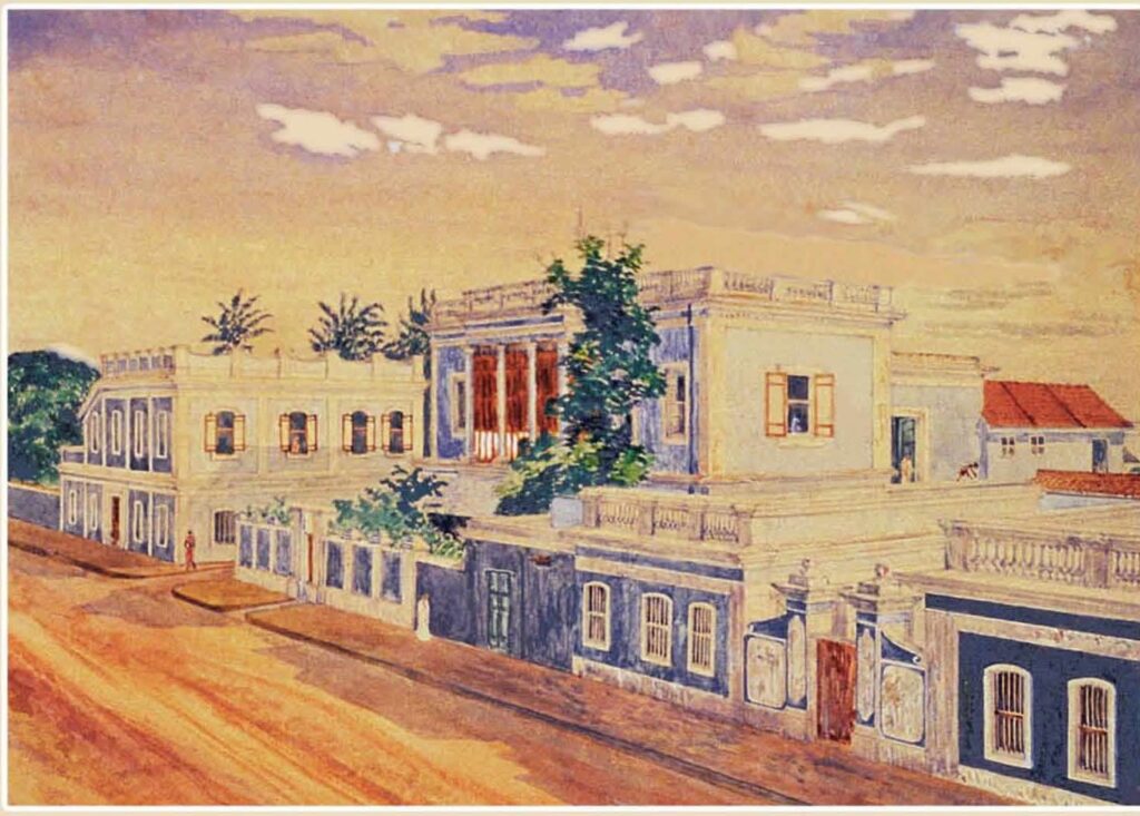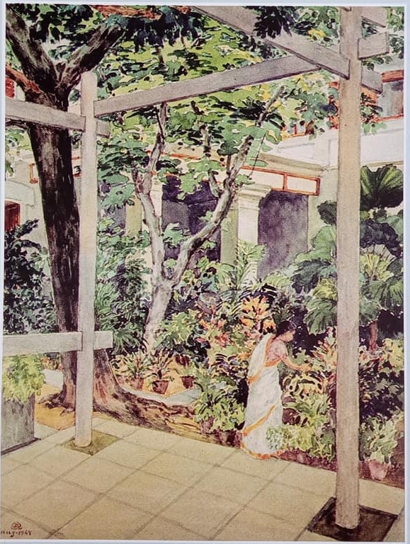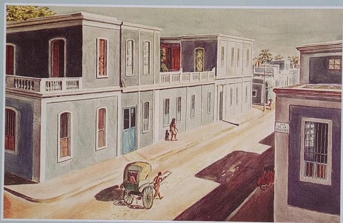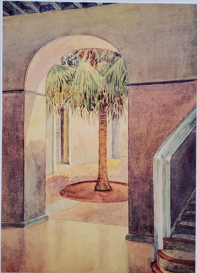 North-east corner of the Ashram main building with the Mother's balcony at right