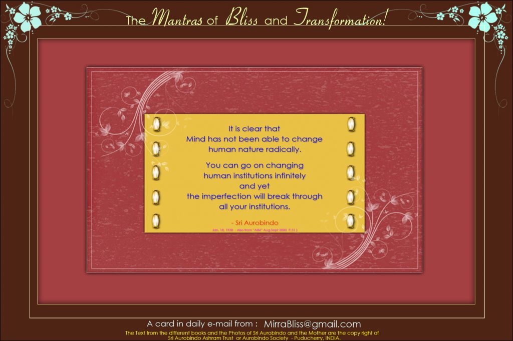 OM Satyam Jnânam Jyotir Aravinda Invocation to the All-Manifesting Truth, Knowledge and Light, that is Sri Aurobindo