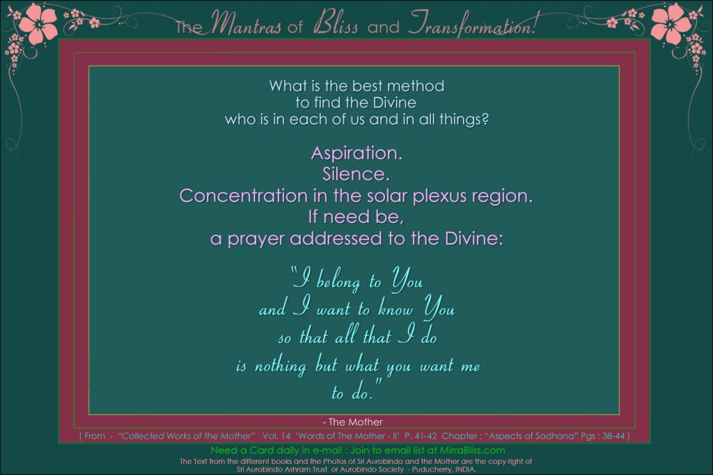 What could be said that is not always the very same aspiration: the law of divine love, the purest expression of what we can conceive of Thee, must be realised more and more upon earth and triumph over all ignorant egoism; we must become more and more perfectly the faithful servitors of that power of love and light, we must live in it, by it; that alone must live and act in us.