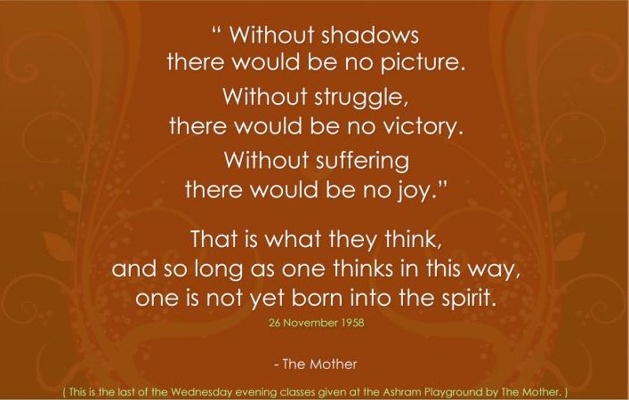 Thou art consciousness and light, Thou art peace in the depth of all things, the divine love that transfigures, the knowledge that triumphs over darkness. To feel Thee and aspire to Thee one should have emerged from the immense sea of the subconscient, one should have begun to crystallise, to grow distinct so as to know oneself and then give oneself as that alone which is its own master can do. And what effort and struggle it takes to attain this crystallisation, to emerge from the amorphous state of the environment; and how much more effort and struggle yet to give oneself, to surrender once the individuality has been formed.