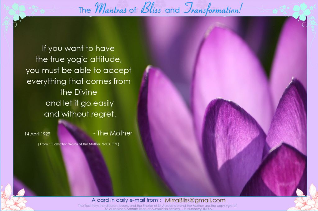 OM Sri Aurobindo Mira Open my mind, my heart, my life to your Light, your Love, your Power. In all things may I see the Divine