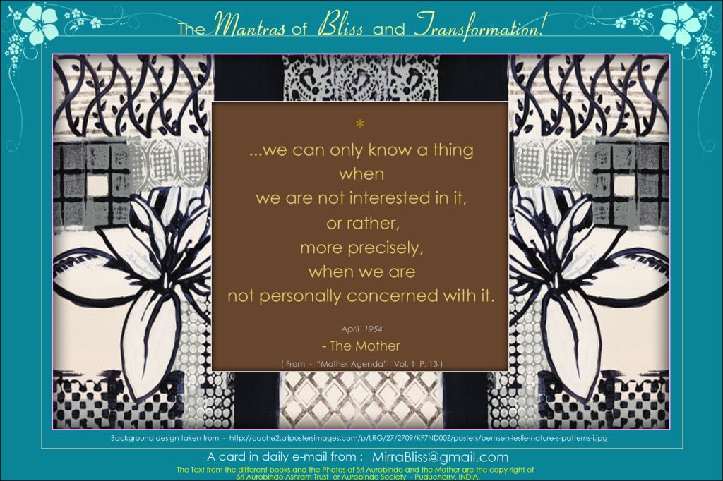 As soon as I have no longer any material responsibilities, all thoughts about these things flee far away from me, and I am solely and entirely occupied with Thee and Thy service. Then, in that perfect peace and serenity, I unite my will to Thine, and in that integral silence I listen to Thy truth and hear its expression. It is by becoming conscious of Thy Will and identifying ours with Thine that there is found the secret of true liberty and all-puissance, the secret of the regeneration of forces and the transfiguration of the being.