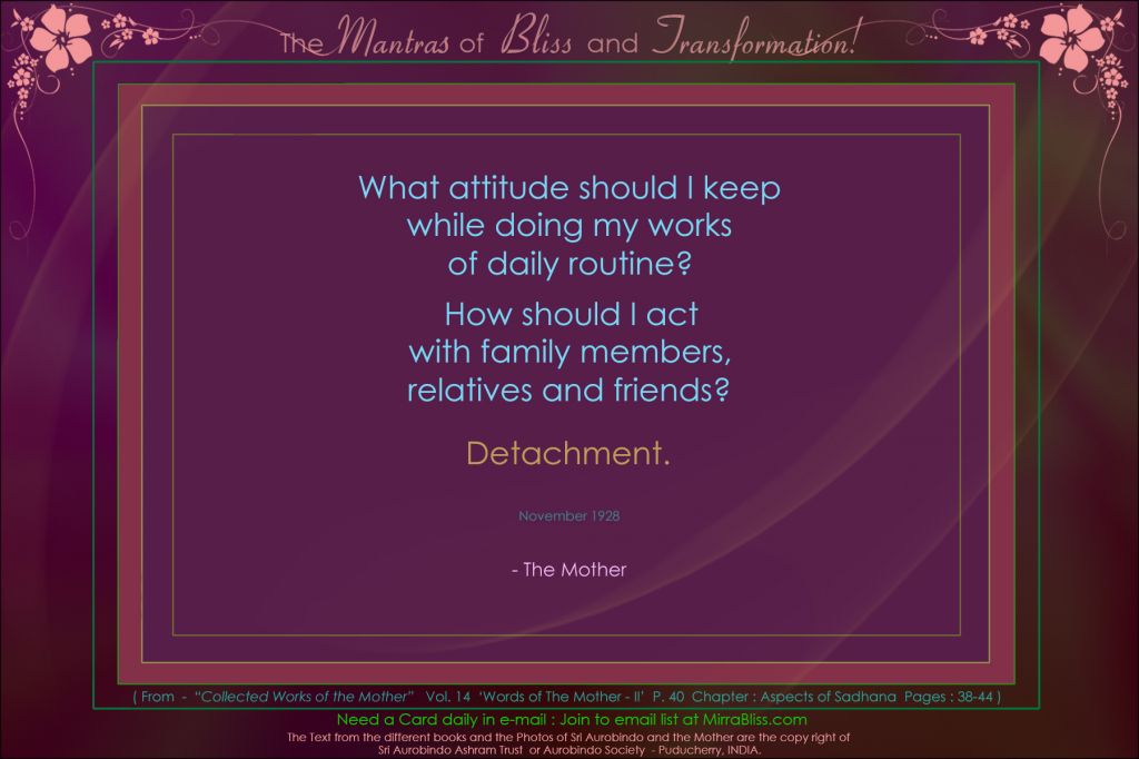 In the night as in the day be always with me. In sleep as in waking let me feel in me always the reality of your presence. Let it sustain and make to grow in me Truth, consciousness and bliss constantly and at all times.