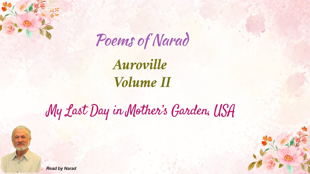 I have said farewell to the flowers and softly walked Upon this hallowed soil that I have loved And filled the feeders as the fledglings talked. My soul lived in beauty deeply moved. I prayed in silence and my prayer took flight Among the herons and hawks that know me well. As I return to Auroville the light Of evening blesses me and the inner bell Calls me to my yearning spirit's home. I know not now what shall before me dawn I only know the voice that bid me come To find the self within me that has grown Through many a life and many a needed death, Through love and faith knowing that we are one, As pioneers inhaling with our breath A blossoming world before us that now has come.